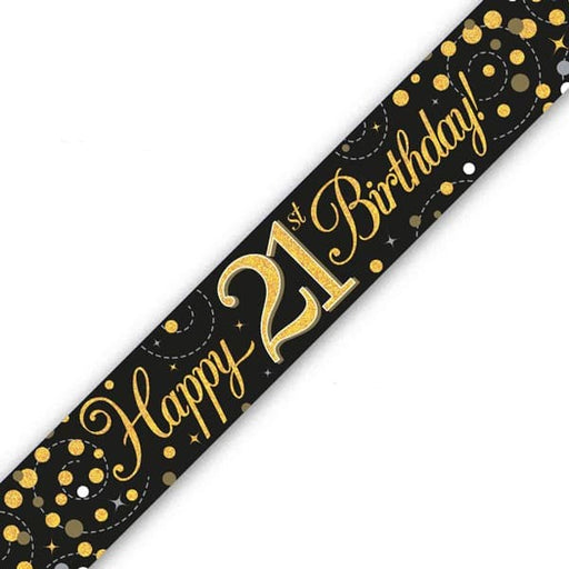 Decorate And Celebrate Your Birthday With Our Happy 21st Birthday Black Sparkling Fizz Holographic Party Banner. 9ft 2.7m Long Happy Birthday Mess...