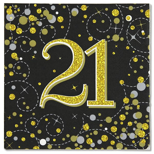 Happy 21st Birthday Black Sparkling Fizz Lunch Napkins. These 21st Birthday Black, Gold And Silver Lunch Napkins Are Perfect For Your Milestone Bir...