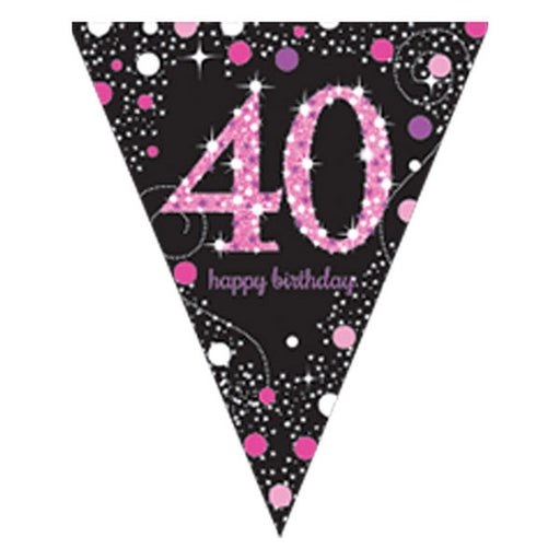 Decorate And Celebrate 40th Birthday Parties With Our 40th Happy Birthday Pink Sparkling Celebration Prismatic Pennant Banner. 4m x 20cm Plastic P...