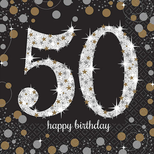 50th Happy Birthday Sparkling Pink Celebration Luncheon Napkins. These Pink And Black 50th Birthday Lunch Napkins Are Perfect For Your Milestone Bi...