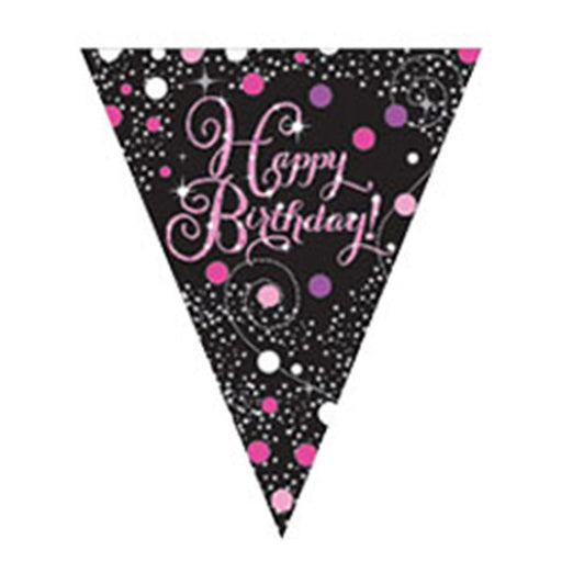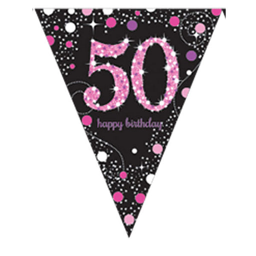 Decorate And Celebrate 50th Birthday Parties With Our 50th Happy Birthday Pink Sparkling Celebration Prismatic Pennant Banner. 4m x 20cm Plastic P...