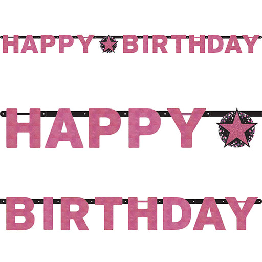 Decorate And Celebrate Birthday Parties With Our Happy Birthday Pink Celebration Prismatic Letter Banner. 2.13m x 17cm