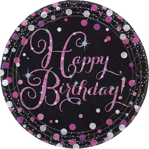 Pink Celebration Happy Birthday Prismatic Paper Plates. These Pink And Black Prismatic Paper Plates Are Perfect For Your Birthday Party. 8 Plates...