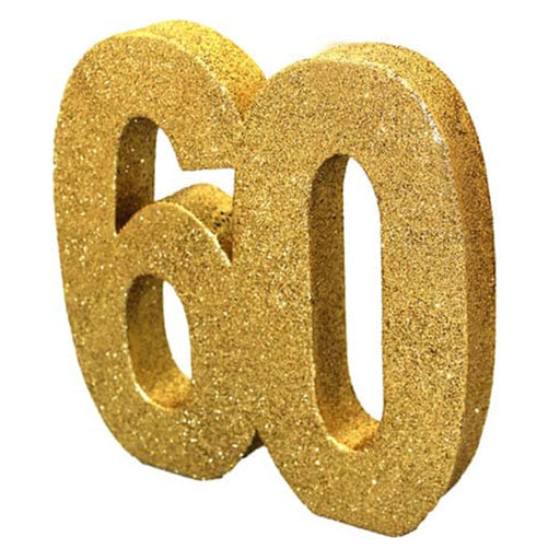 Decorate Your 60th Milestone Birthday In Style With Our Free Standing Gold Glitter 60th Table Decorations. 20cm w x 20cm h