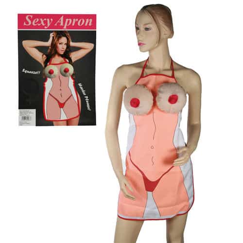Every mans fantasy a sexy female apron body with plush boobs. This apron is 69cm x 48cm.