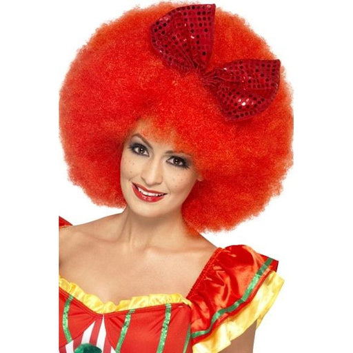 Red Mega Clown Afro Wigs With Sequin Red Bow.