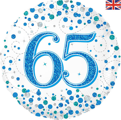 Celebrate And Decorate 65th Birthday Parties With Our Holographic 65th Blue Sparkling Fizz Foil Balloon 18 Inch Helium Quality Round Foil Balloon ...