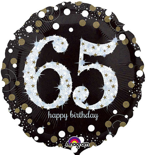 Celebrate And Decorate 65th Birthday Parties With Our Holographic 65th Black Sparkling Fizz Foil Balloon. 18 Inch Helium Quality Round Foil Balloo...