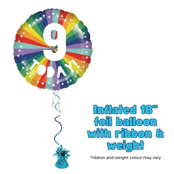 Celebrate And Decorate Your Birthday Party With This Colourful 9 Today Bright Rainbow Foil Balloon.