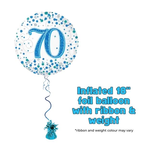 Celebrate And Decorate 70th Birthday Parties With Our Holographic 70th Blue Sparkling Fizz Foil Balloon