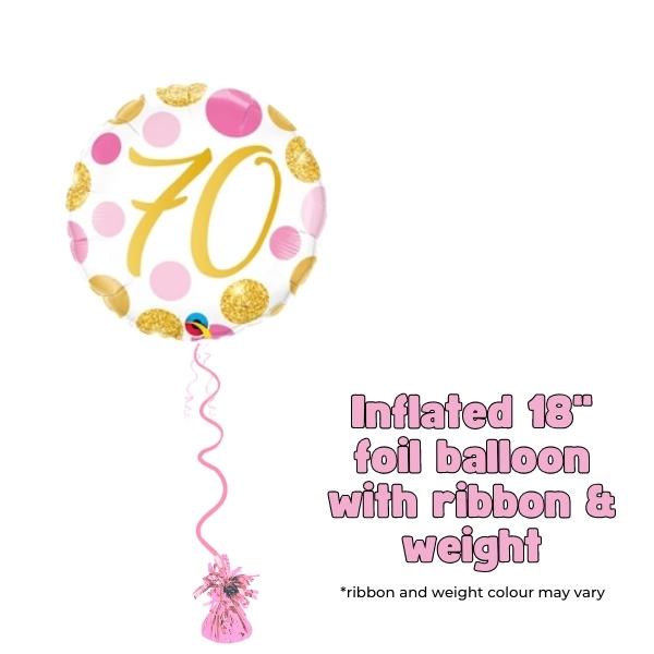 Make The Birthday Milestone Celebration Feel Extra Special With Our 70th Birthday Pink And Gold Dots Foil Balloon.