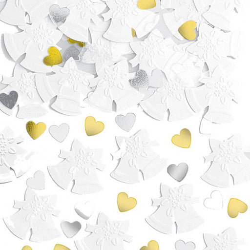 Dazzling Embossed Wedding Bells With Hearts Confetti Table Sprinkles. 14g Pack