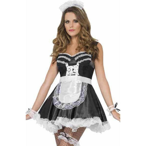 Black And White French Maid Dressing Up Kit With Hat, Apron And Garter. One Size Fits Most.
