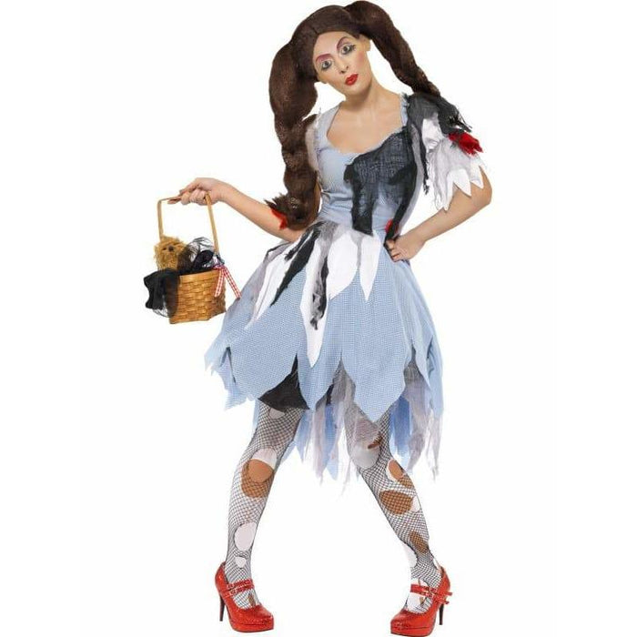 Deadly Dorothy once upon a nightmare Halloween fancy dress costume. This Deadly Dorothy horror fairy tale costumes includes blue white and black ripped dress.
