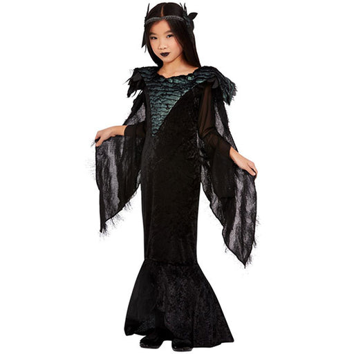 Deluxe Raven Princess Costume, Black, with Dress, Cape, and Headdress. Washing Instructions: Dry Clean Only