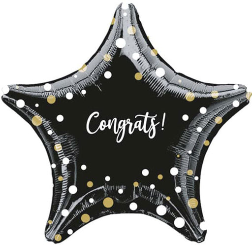 Celebrate And Decorate Special Occasions With Our Black Star Congrats With Dots Foil Balloon. 18 Inch Helium Quality Star Shaped Foil Balloon Cong...