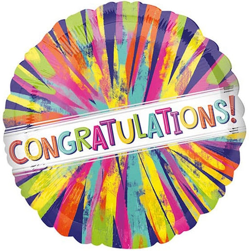 Celebrate And Decorate Special Occasions With Our Bright Congrats Painterly Bursts Foil Balloon. 18 Inch Helium Quality Round Foil Balloon Congrat...