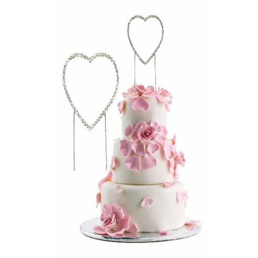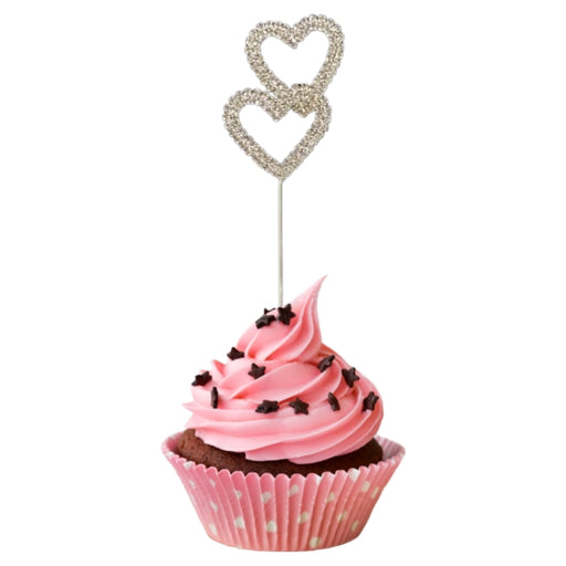 Silver Double Heart Diamante Cake Picks. Helps Add A Special Touch To Finish Of Cake Creations. The Pick Is Approx 18cm Height This Includes Stem.