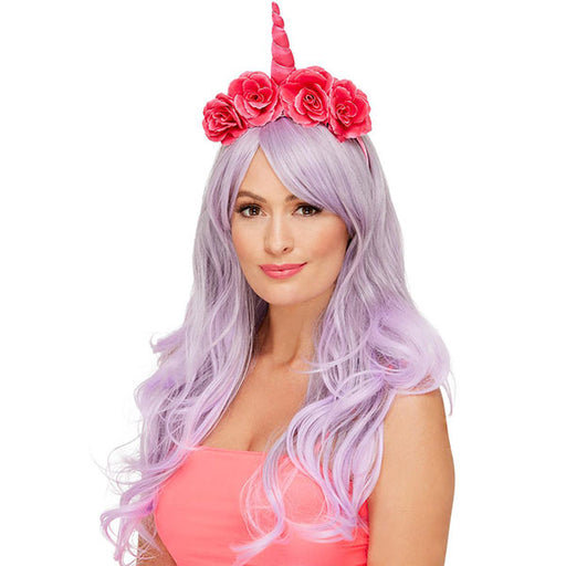 Look Magical In This Lilac Unicorn Wig With Horn And Attached Flowers.