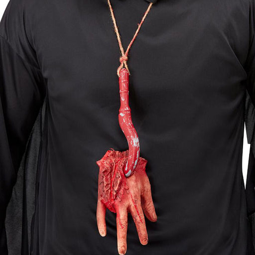 Look Gruesome This Halloween With This Beige And Bloody Looking Severed Hand Necklace.
