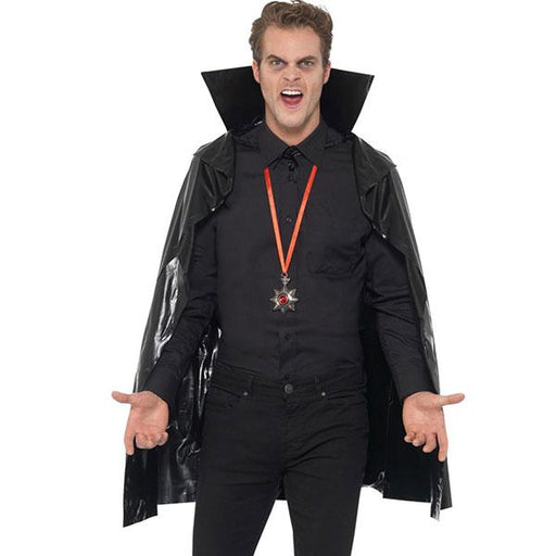 Black Vampire PVC Halloween Capes With Stand Up Collar. The PVC Vampire Capes Measure 114cm Long.