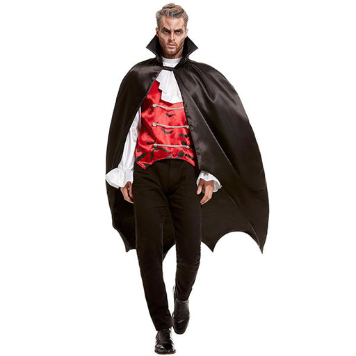 Black Vampire Bat Wing Halloween Cape With High Collar.