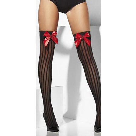Sheer Hold Ups. Express Yourself In These Black Sheer Hold Ups With Vertical Stripes And Sequin Heart Red Bow Detail. Our Fever Hosiery Collection ...