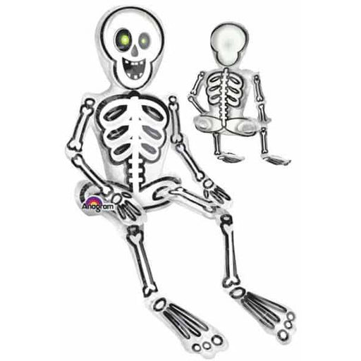 Uninflated Sitting Skeleton Air Filled Foil Balloon. This Halloween Balloon Is 26 Inch 66cm. This Sitting Skeleton Is Air Fill Only And Self Seali...