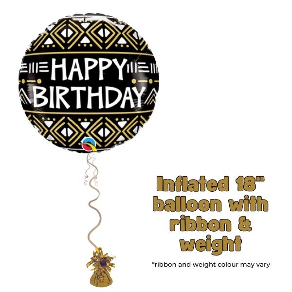 Celebrate And Decorate Your Birthday Parties With This Gold And Black Mud Cloth Print Happy Birthday Foil Balloon.