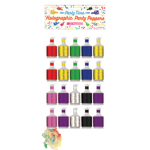 Get The Party Started With These Assorted Colour Holographic Party Poppers. Includes 20 Poppers