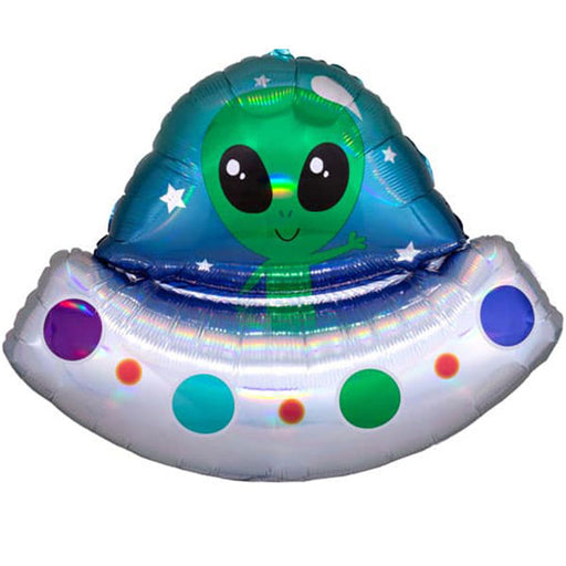 Celebrate And Decorate Space Themed Parties And Occasions With Our Large Shaped Alien Spaceship Foil Balloon. 28 Inch 71cm x 21 Inch 53cm Supersha...