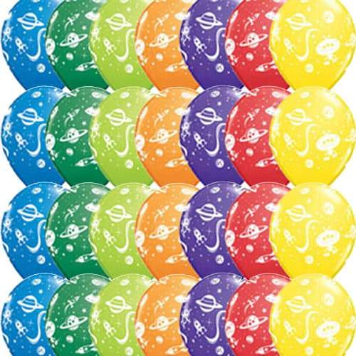 Aliens and Space Ships 11 inch assorted latex balloons x25. This assortment includes, Dark Blue, Green, Red, Yellow, Orange, Purple Violet, Lime...