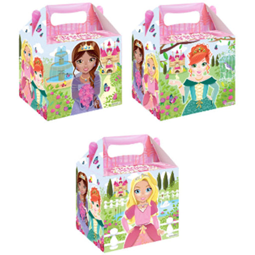 Princess Party Food Box With Carry Handles. Perfect For Food, Gifts Or Used As Party Activity Packs. 3 Assorted Designs Per Pack 12 Party Boxes P...