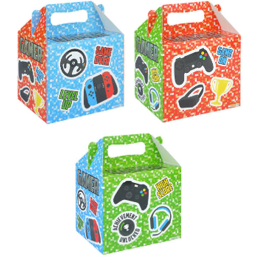 Gaming Party Food Box With Carry Handles. Perfect For Food, Gifts Or Used As Party Activity Packs. 3 Assorted Designs Per Pack 12 Party Boxes Per...