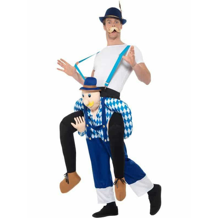 Hitch A Ride To Your Oktoberfest Celebration With Our Piggyback Bavarian Fancy Dress Costumes Featuring One Piece Suit With Mock Legs.