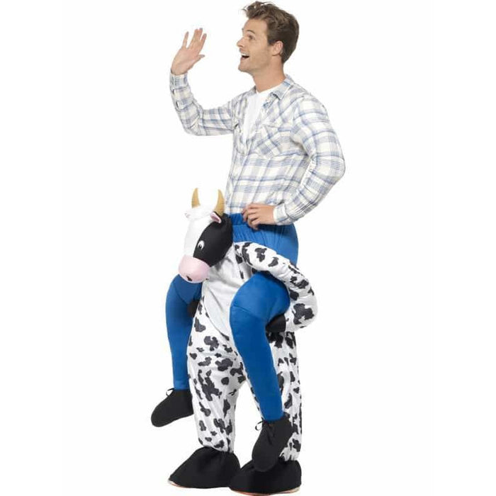 Bring Some Beef To Your Night Out In Our Piggyback Cow Fancy Dress Costumes Featuring One Piece Suit With Mock Legs.