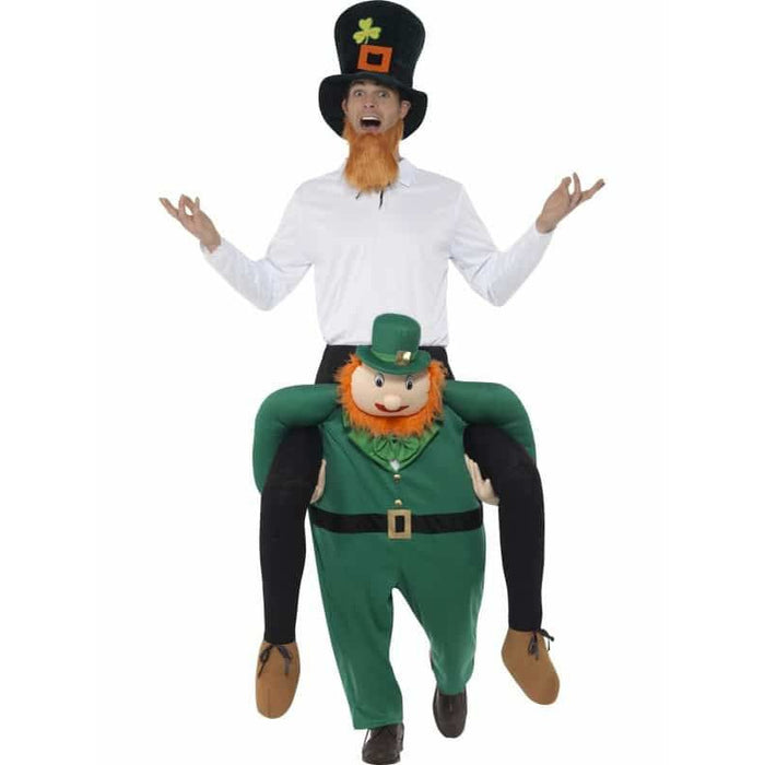 Top 'O' The Morning To Ya. Celebrate The Luck Of The Irish With Our Piggyback Paddy's Leprechaun Costume. Available In A Lucky Green Colour, This Costume Completes As A One Piece Suit With Mock Legs.