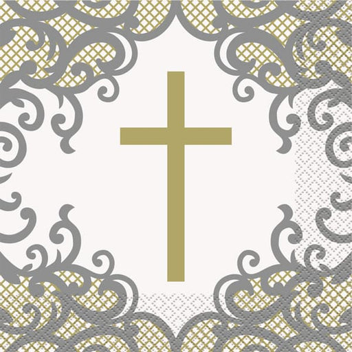 Fancy gold cross party napkins with silver filigree design are perfect for religious party celebrations. 30cm x 30cm 2ply 16 napkins per pack i...