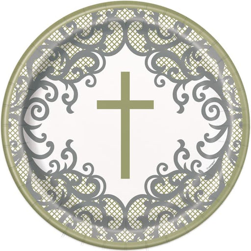Fancy gold cross party plates with silver filigree design are perfect for religious party celebrations. 9 inch paper plates 8 plates per pack idea...