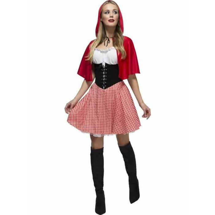 Tell Your Own Tale In Our Little Red Riding Hood Fancy Dress Costume. The Red Riding Hood Costume Includes Black, Red And White Dress With Hooded Cape.