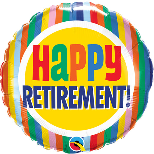 Celebrate And Decorate Someone Retiring With Our Happy Retirement Colourful Stripes Foil Balloon. 18 Inch Helium Quality Round Foil Balloon Retire...