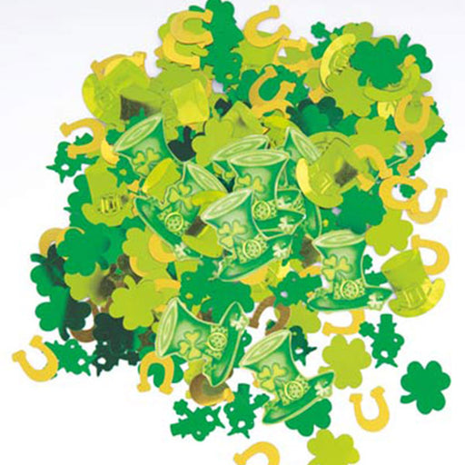 Assorted St Patrick's Table Confetti Sprinkles With Shamrocks, Horse Shoes And Leprechaun Hats. 14g pack