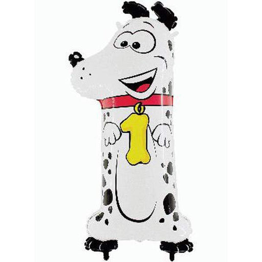 Uninflated Number 1 Dog Zooloon 40 inch Supershape Helium Foil Balloons. This Item Is Sold Uninflated.