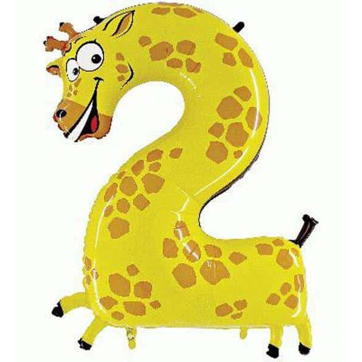 Uninflated Number 2 Giraffe Zooloon 40 inch Supershape Helium Foil Balloons. This Item Is Sold Uninflated.