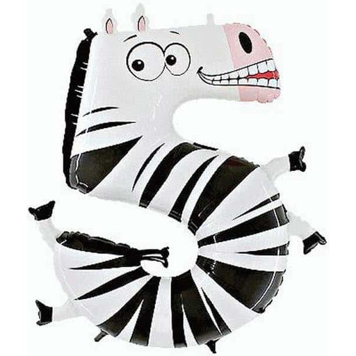 Uninflated Number 5 Zebra Zooloon 40 inch Supershape Helium Foil Balloons. This Item Is Sold Uninflated.