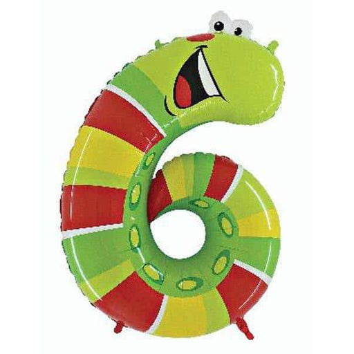 Uninflated Number 6 Caterpillar Zooloon 40 inch Supershape Helium Foil Balloons. This Item Is Sold Uninflated.