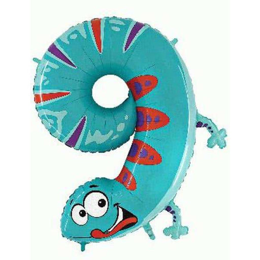 Uninflated Number 9 Gecko Zooloon 40 inch Supershape Helium Foil Balloons. This Item Is Sold Uninflated.
