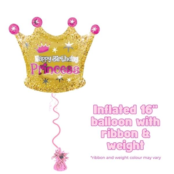 Make Someone's Day Extra Special With This 16" Gold Crown Happy Birthday Princess Foil Balloon. Perfect For Princess Themed Parties And Birthday Parties.