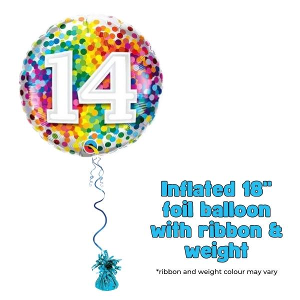 Make Birthdays Feel Extra Special On Their 14th Birthday With This Rainbow Confetti Number 14 Foil Balloon.