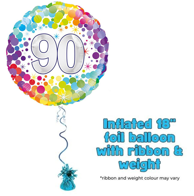 Make Birthdays Feel Extra Special On Their 90th Birthday With This Colourful Confetti Number 90 Foil Balloon.